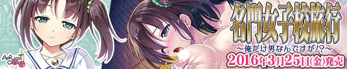 <a href="http://www.t-apricot.jp/cherry/meimon/"><img src="http://www.t-apricot.jp/cherry/meimon/banner/img/mj_l02.jpg" width="700" height="140" border="0" alt="『 名門女子校旅行〜俺だけ男なんですが!?〜 』応援中!"></a>